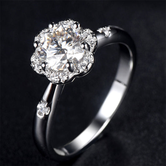 1-Carat Floral Zircon Engagement Ring - 925 Sterling Silver 8-Prong Wedding Jewelry for Women