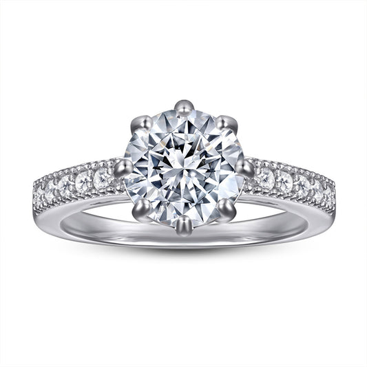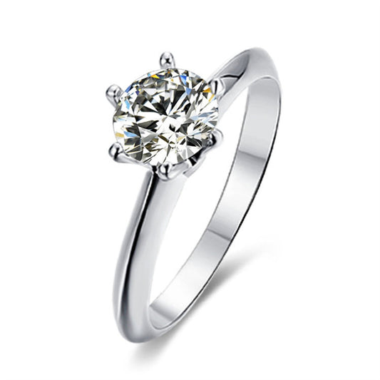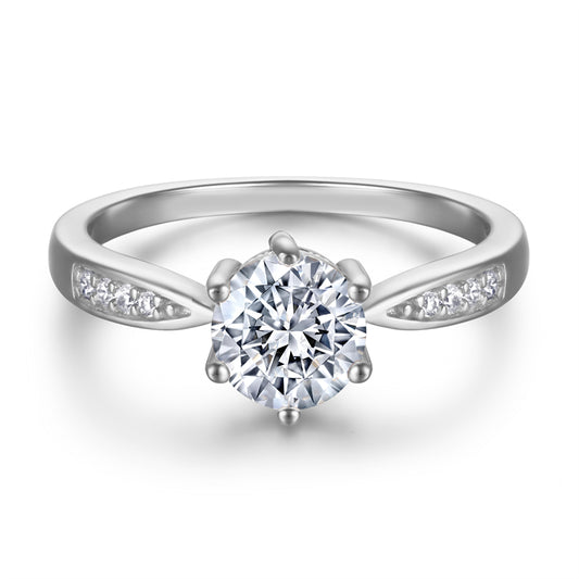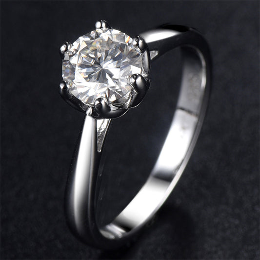 1 Carat Moissanite Six-Prong Engagement Ring - 925 Sterling Silver Classic Solitaire