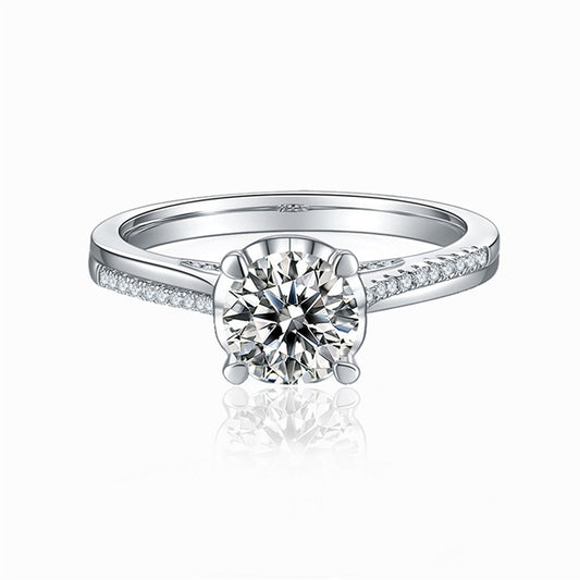 1 Carat D Color Moissanite Engagement Ring - 925 Sterling Silver Four-Prong Solitaire
