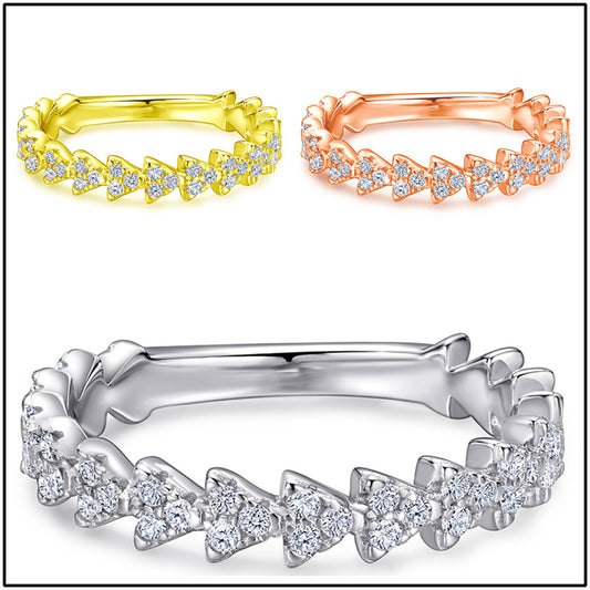 Triangular Pavé 925 Silver Ring - Minimalist Geometric Band with Zirconia Stones