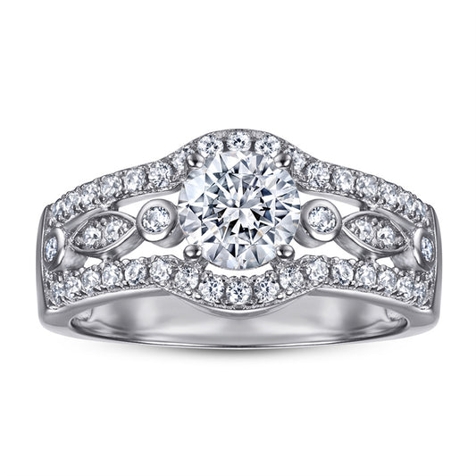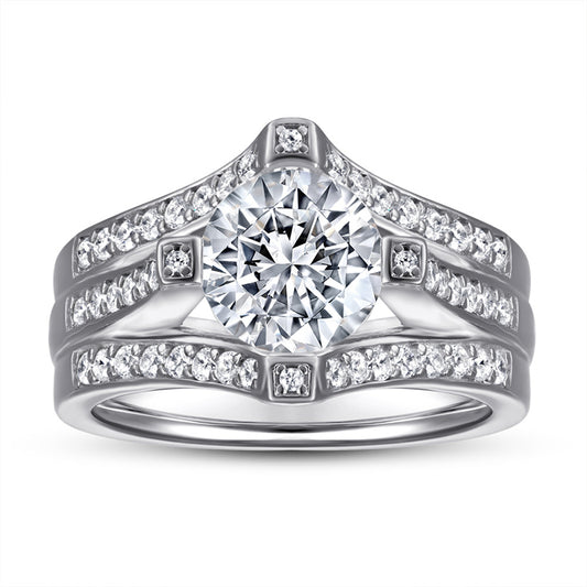Triple Band 925 Silver Ring - 1 Carat Zirconia Three-Row Diamond Wedding Set