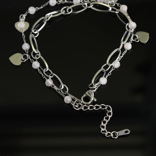 Unique Stainless Steel O-Chain Necklace with Green Heart-shaped Pendant