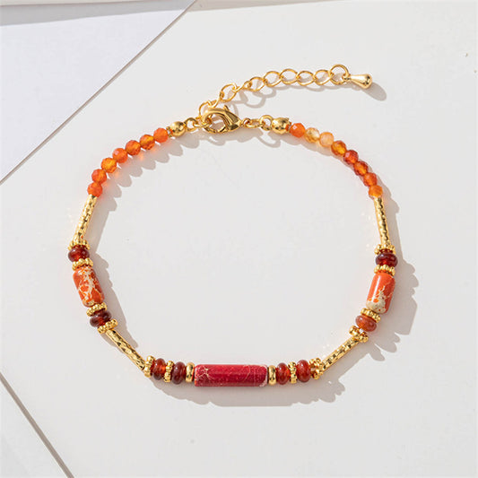 Unisex Geometric Oval Natural Stone Bracelet - Electroplated Copper, Instagram Style, 17.8g Employee Gift