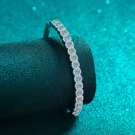 Zodiac Botanical Bangle 2.48ct Moissanite 46x56mm Camellia Tree Red Bean 925 Silver Rhodium