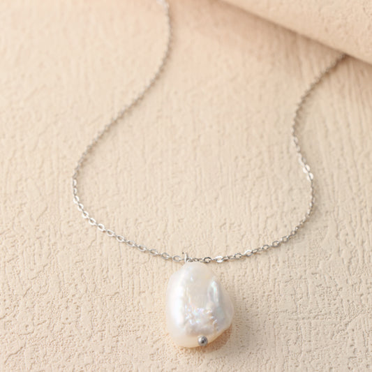 Silver O-Chain Necklace with Natural Stone Pendant