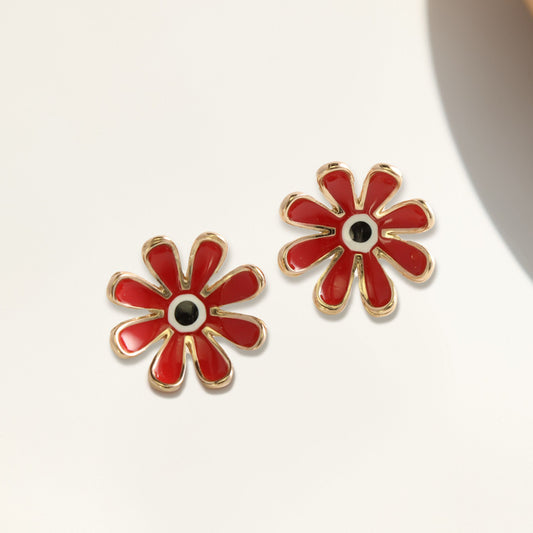 Red Copper Daisy Stud Earrings