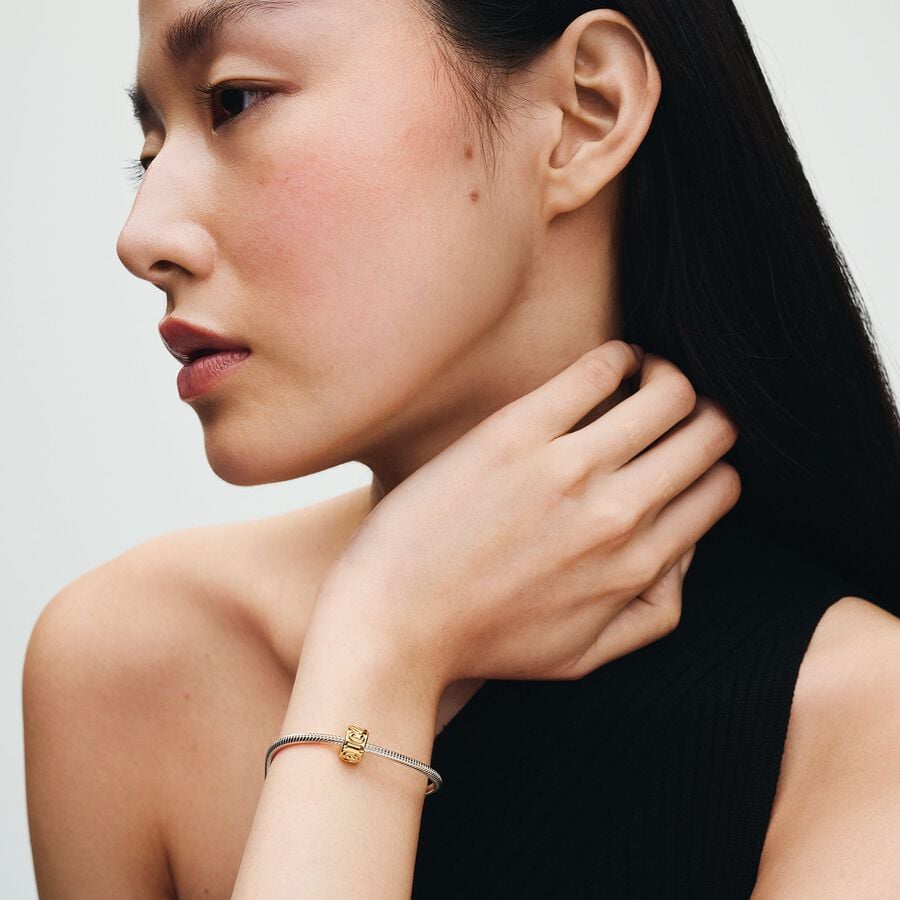 Add a touch of symbolic elegance to your bracelet with the Pandora Knotted Hearts Clip Charm! This 14K gold-plated clip charm features an exquisite row of intertwined hearts and love knots, blending two timeless symbols of affection into one meaningful design. Perfect for creating balanced spacing in your charm stack, this piece adds both visual harmony and emotional depth to your Pandora Moments collection. The intricate knotwork represents unbreakable bonds, while the polished gold finish brings a luxurious glow. Note: This clip charm is designed to secure between raised dividers on your bracelet for optimal placement.