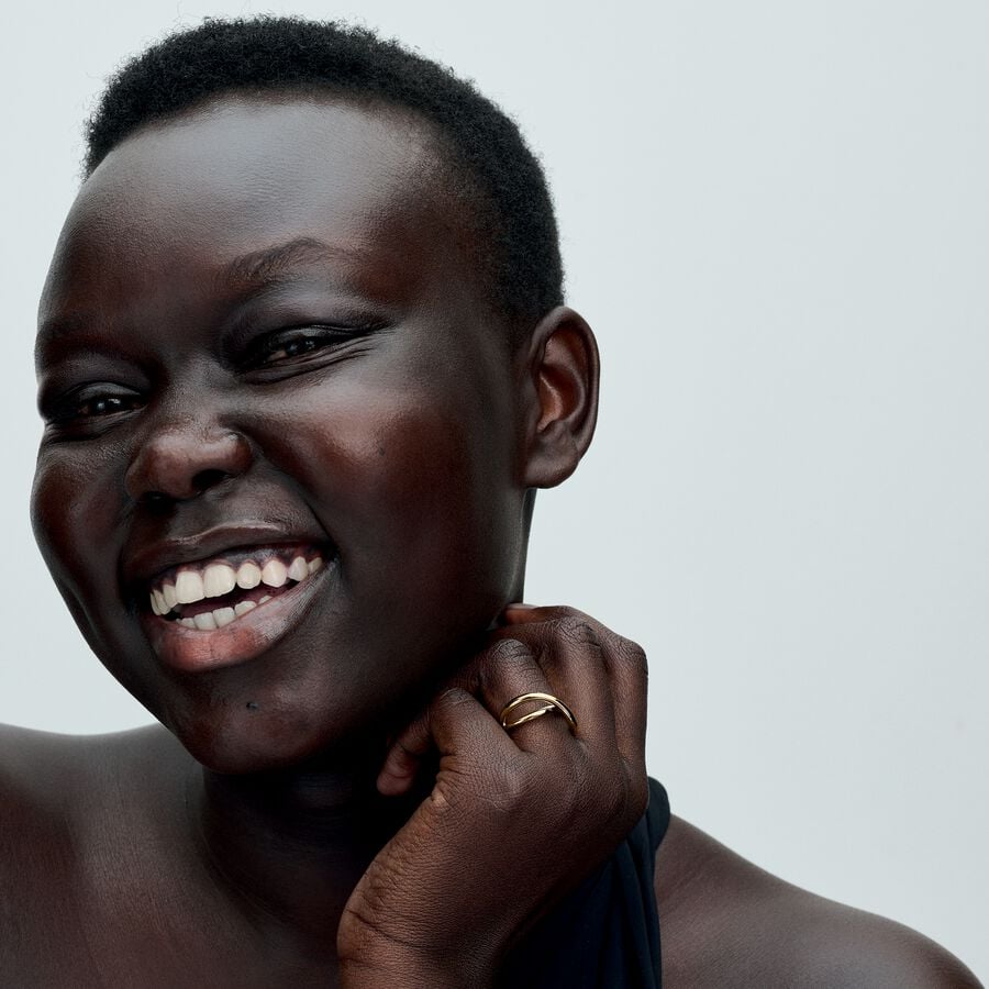 Designed to bring architectural elegance to your look, this ring pairs beautifully with warm-toned jewelry for a monochromatic minimalist style or serves as the perfect base for a bold, maximalist stack. Whether worn alone or layered, its organic, fluid design adds dimension and sophistication to any ensemble.