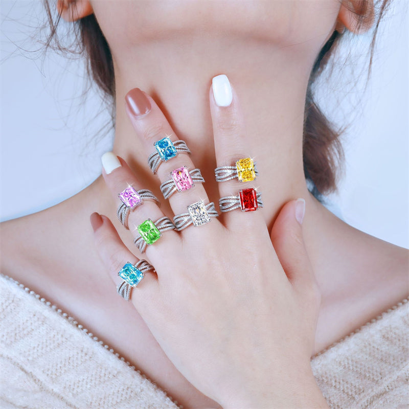 Command attention with this stunning 4ct square-cut gemstone 925 sterling silver ring featuring an impressive 8*11mm center stone with dazzling flame and ice-cut detailing. The contemporary geometric design combines premium 5.5g 925 silver construction with eight vibrant gemstone color options. Perfect for making a bold fashion statement, this rhodium-plated ring offers office-to-evening versatility in US sizes 5-10.