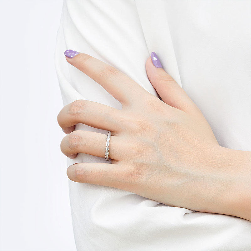 925 Silver Geometric Eternity Band with Zircon Stones Rhodium Plated Women's Professional Jewelry Size 5-10