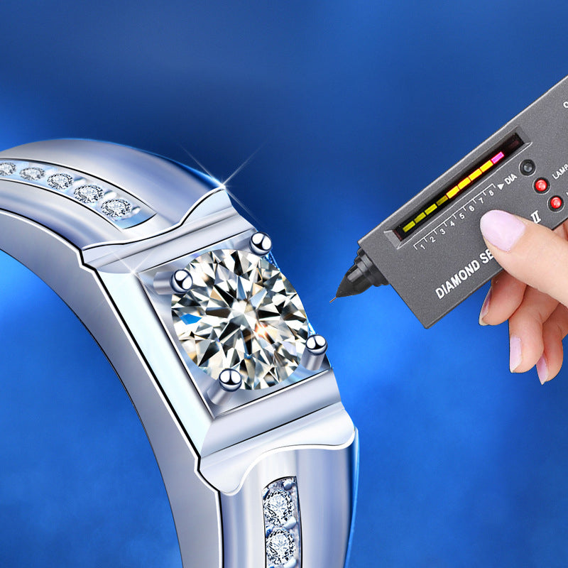 925 Silver Men's Adjustable Geometric Ring with 0.5ct or 1ct Moissanite Polished Casual Jewelry White Gold Plated