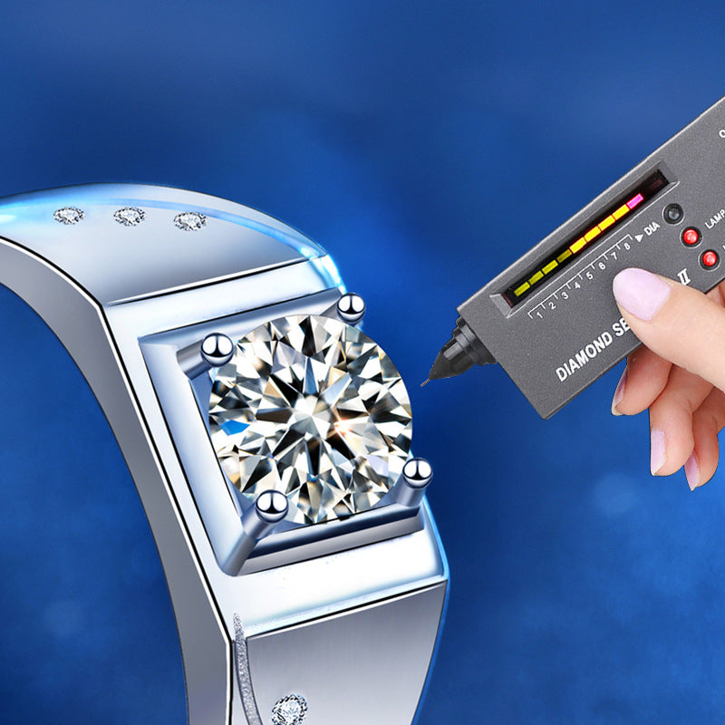 925 Silver Men's Geometric Adjustable Ring with 1ct Moissanite and Hearts Arrows Zircon Boyfriend Style White Gold Plated