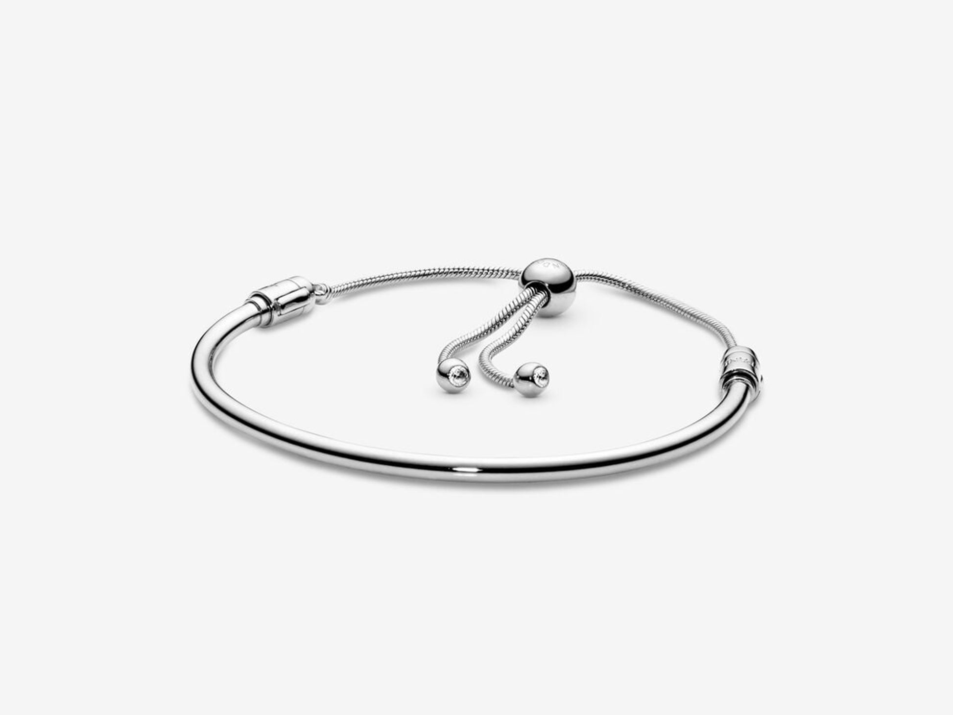 Elevate your style with this fashionable 925 silver slider bracelet designed for Pandora Moments charms. It features an adjustable chain clasp and transparent cubic zirconia stones on both end caps for a dazzling sparkle. Mix and match it with your favorite charms to express your true self and unlock your unique personality.