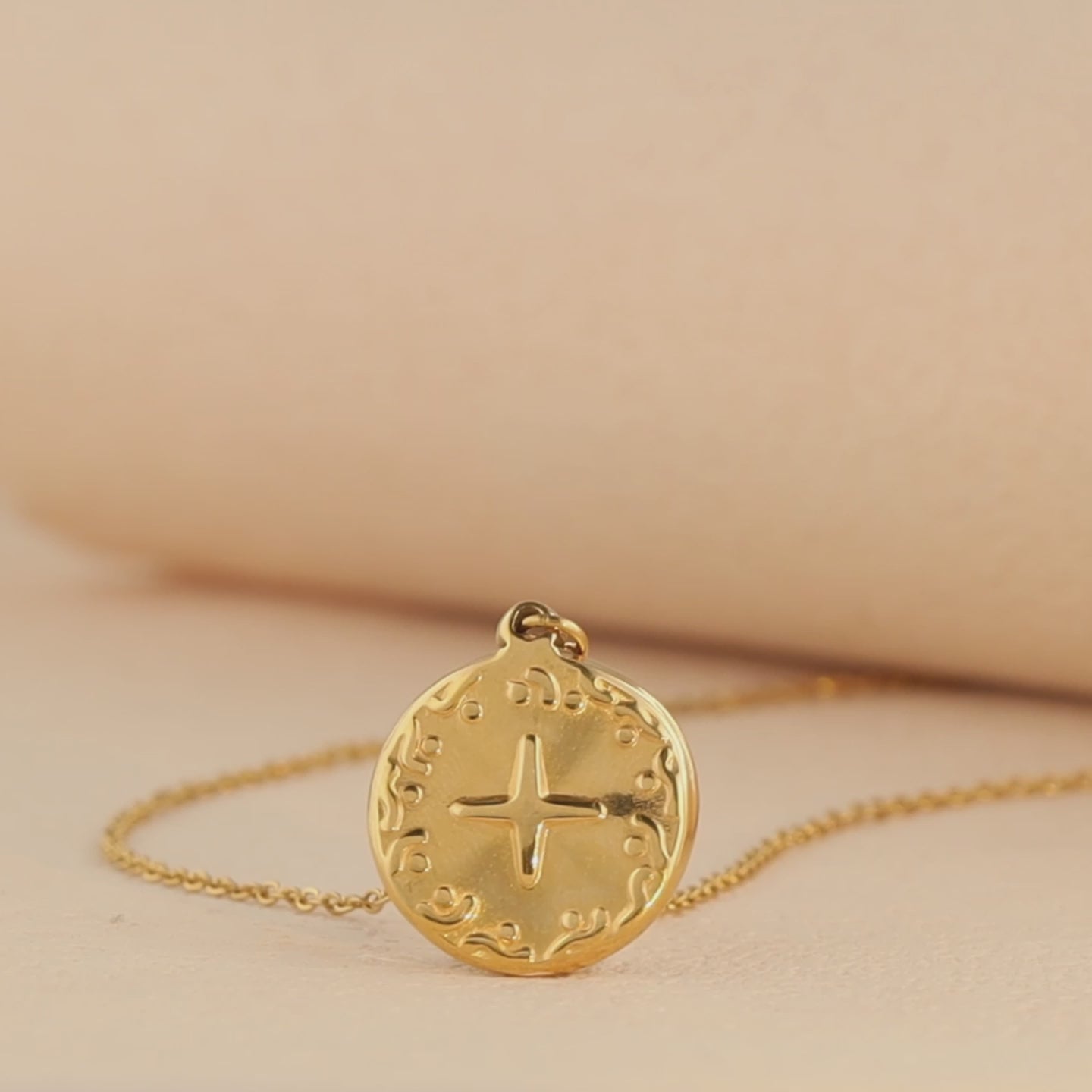 O-shaped chain with embossed circular pendant