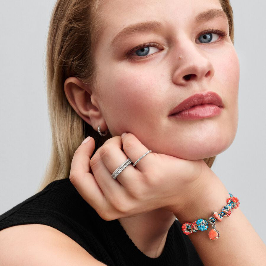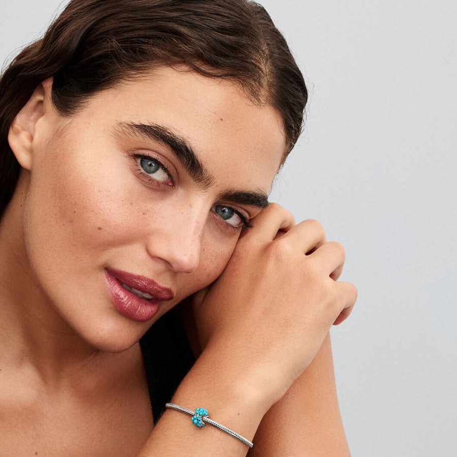 Immerse yourself in the ocean's beauty with our Turquoise-colored Ocean Charm, crafted in cool sterling silver and adorned with dazzling cubic zirconia and luminous imitation turquoise. This captivating charm perfectly captures the sea's essence, featuring clusters of vibrant blue stones that evoke crashing waves and sunlit waters. The flawless cubic zirconia adds multi-faceted sparkle, while the imitation turquoise provides authentic oceanic hues. Measuring 11.5mm deep, 10.7mm high, and 7.3mm wide, this sterling silver charm makes a beautiful addition to any nautical jewelry collection, bringing a piece of the ocean's magic wherever you go.