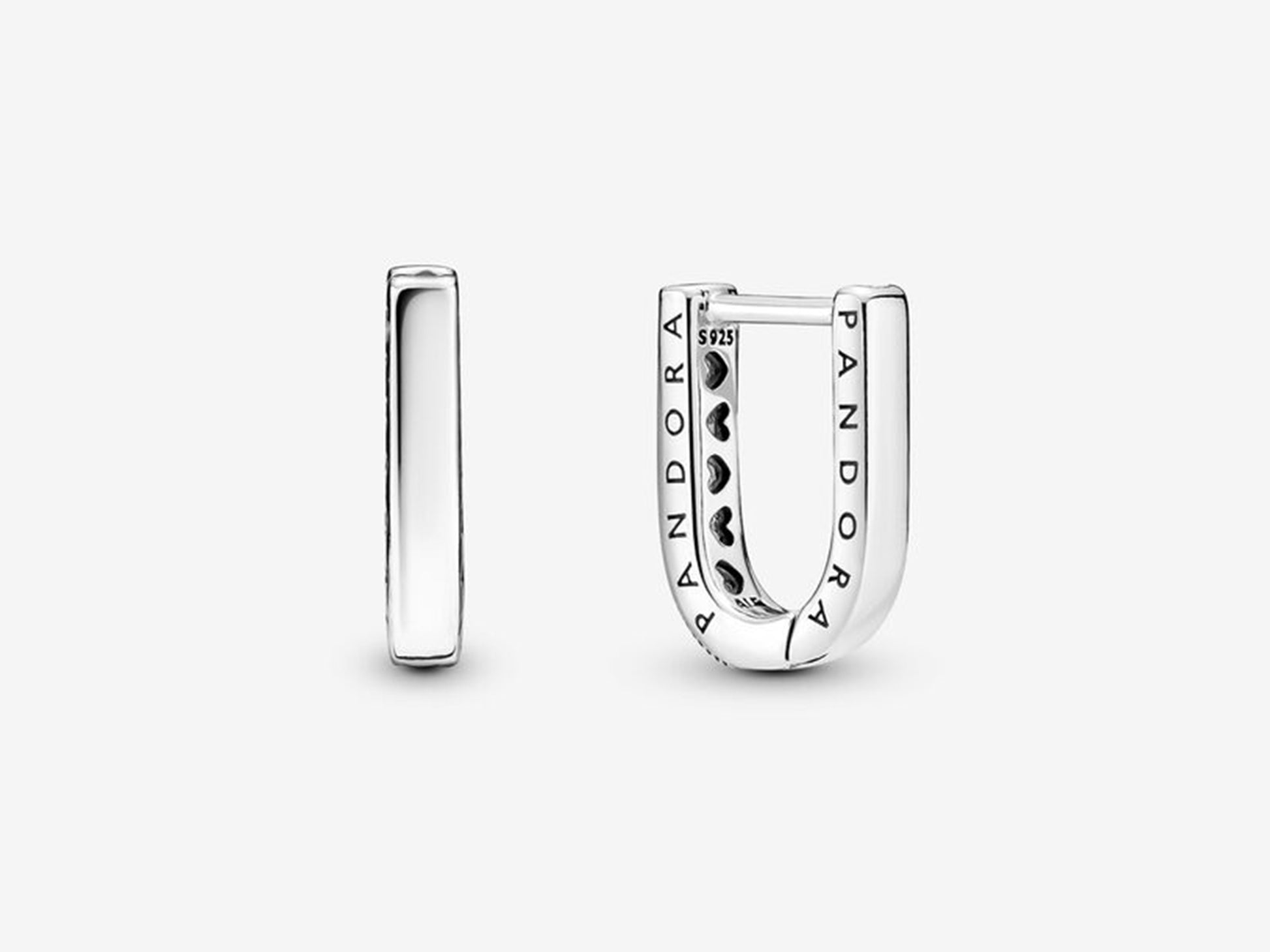 Introducing the Pandora U-Shaped Earrings, a harmonious blend of iconic elements. Crafted from sterling silver, these U-shaped hoops feature the signature Pandora logo on both sides, with a row of hollow hearts on the inner edge. The outer half dazzles with pavé-set synthetic gemstones and delicate beading, while the other half remains smooth. The hinged design allows the upper part to open, offering versatility in styling. Embrace the essence of the Pandora new classic series, combining three distinctive elements: pavé detailing, the logo, and heartfelt motifs. These earrings can be worn symmetrically for a balanced look or asymmetrically for a unique style statement.