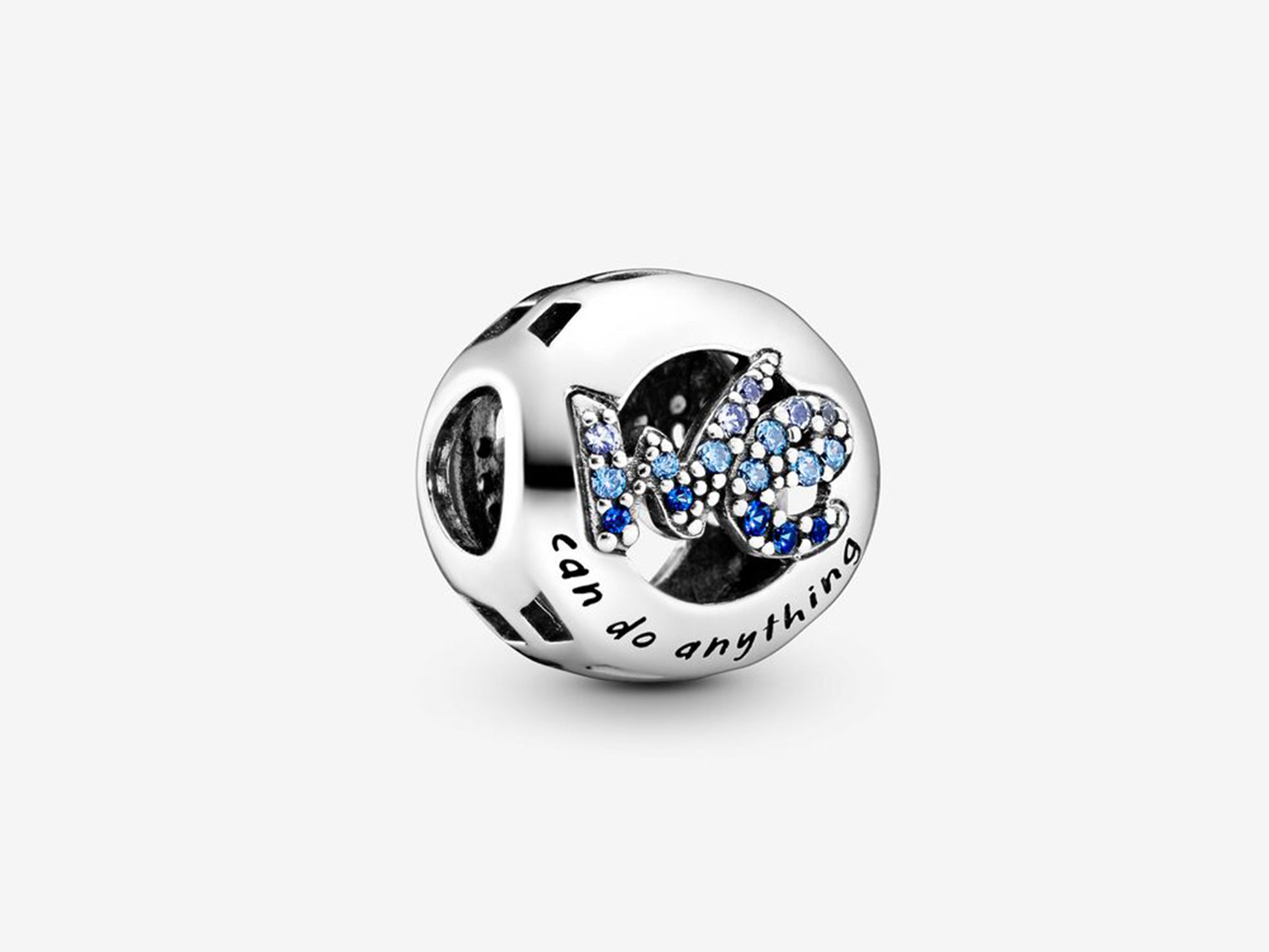 Wear this symbol of transformation, the Pandora "Unstoppable" Charm, and display your support for the voice of the future. This limited edition 925 silver charm features "We can do anything" and "The power is in me" inscriptions in blue-toned synthetic crystals and cubic zirconia. Adorn your Pandora Moments series bracelet with this charm to proudly declare to the world that together, we will create positive change, empower young girls and women worldwide, provide them with resources, opportunities, and a supportive environment for learning, and help them reach their full potential.