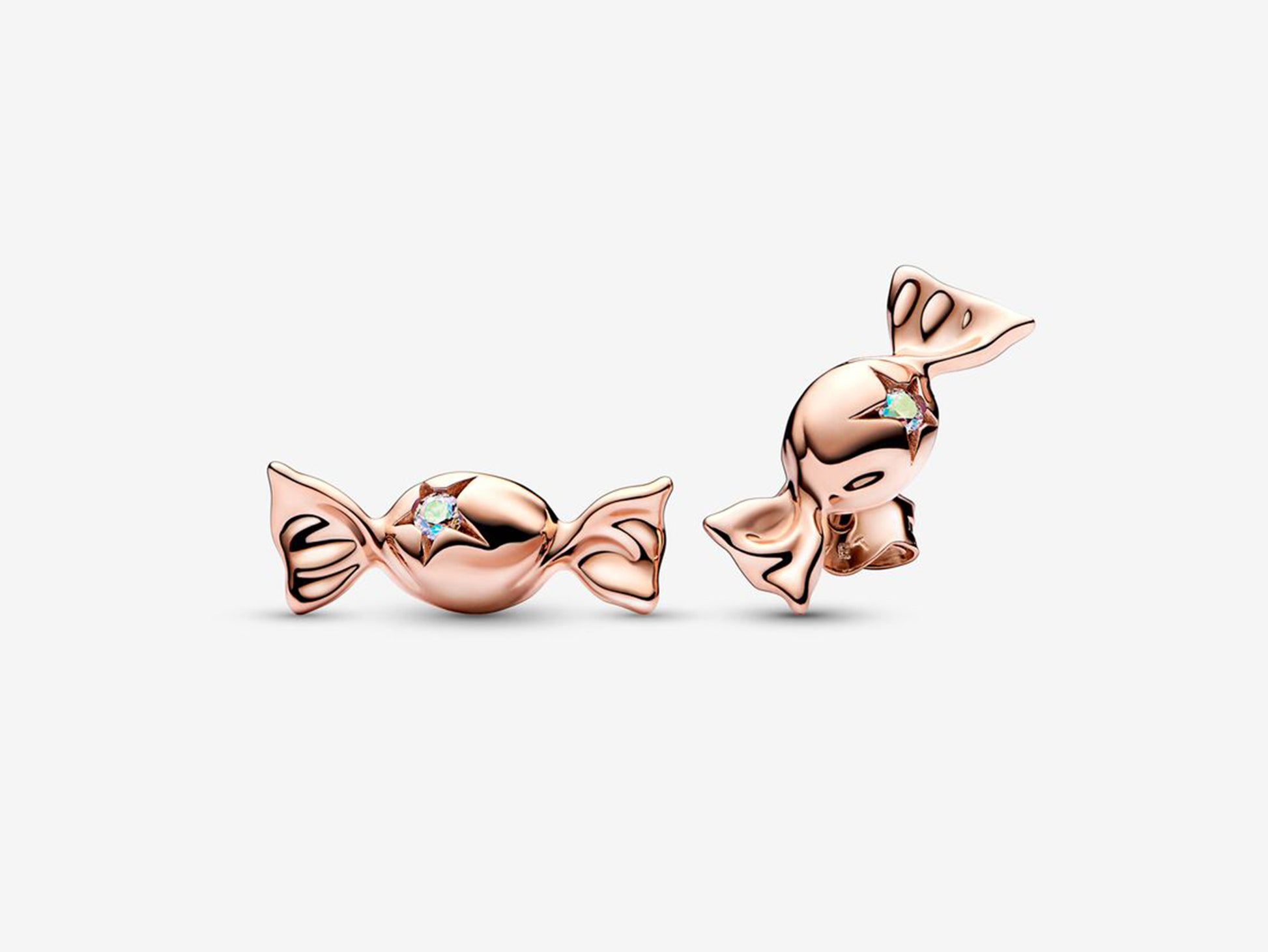 Indulge in the enchanting world of Pandora Moments with the Sweet Secret Charms. Crafted from the distinctive gold-plated copper-silver alloy, these Candy Star Ear Studs feature lifelike pleats on both ends of the twisted candy wrapper. The front is adorned with a carved five-pointed star, showcasing a round synthetic cubic zirconia at its center. Sold as a pair, these earrings are inspired by the vibrant and playful realm of Pop Art Candy. Immerse yourself in the whimsical allure of these Aurora Star Candy delights.