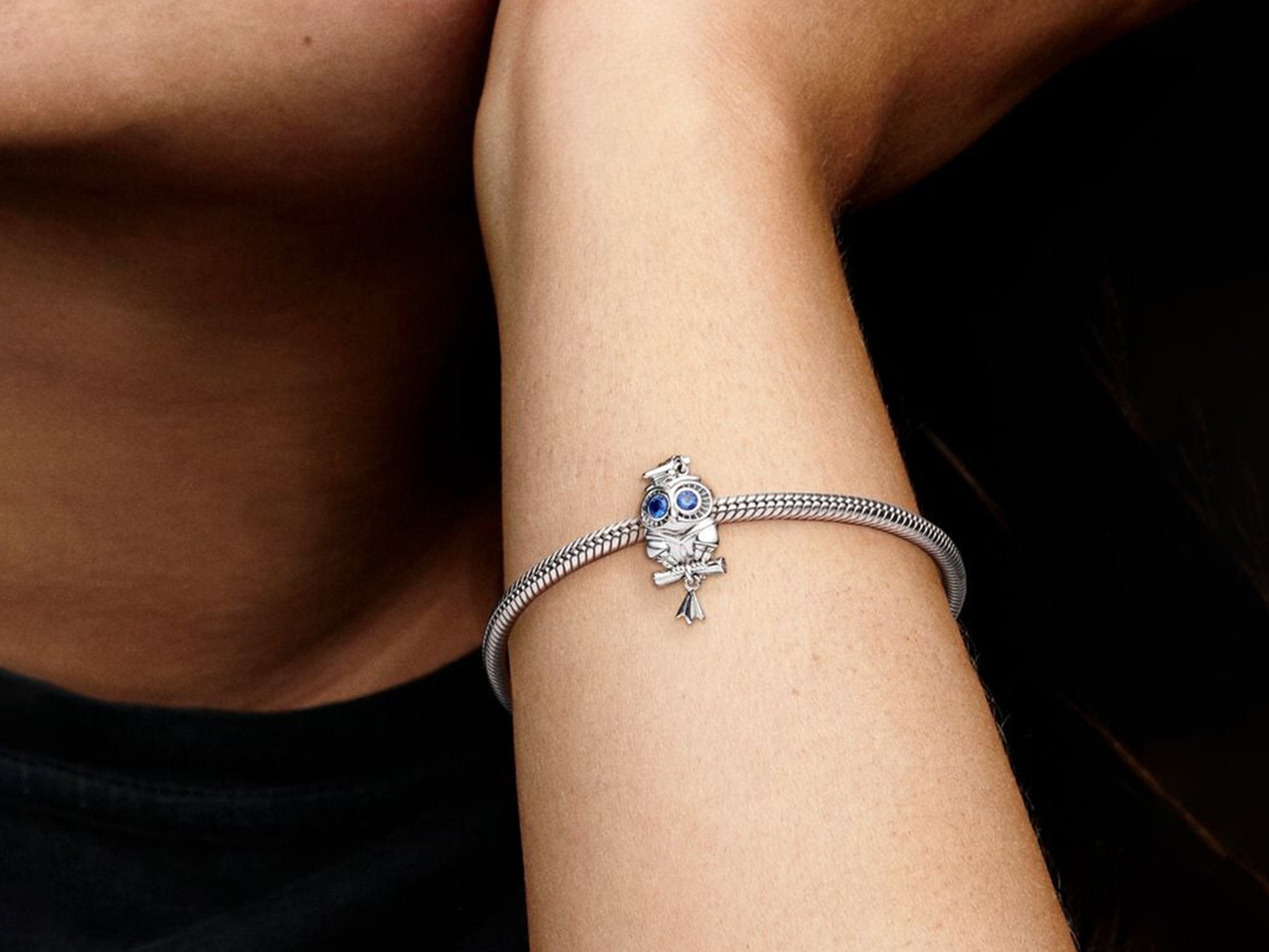 Celebrate scholarly achievement with the sterling silver Wise Owl Graduation Charm. Commemorate the special milestone that serves as a reminder of all of your hard work and personal growth with a charm featuring an owl wearing a graduation hat sitting atop a scroll, both of which feature a dangling tassel. The owl’s eyes are two stellar blue crystals. Wear the graduation charm as a symbol of the fact that you can accomplish anything you put your mind to.